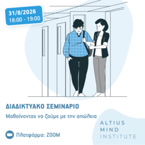 Το Altius Mind Institute διοργανώνει διαδικτυακό σεμινάριο με θέμα “Μαθαίνοντας να ζούμε με την Απώλεια”, για άτομα όλων των ηλικιών μέσω της πλατφόρμας Zoom την Δευτέρα, 31 Αυγούστου 2026 και ώρα 18:00-19:00.